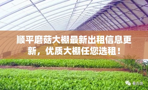 随着农业产业的不断升级和现代化步伐的加快,设施农业特别是大棚种植技术在我国得到了迅猛发展,顺平县作为农业大县,其磨菇大棚种植技术也备受关注,本文将围绕顺平磨菇大棚出租信息最新更新展开,为有意从事大棚种植的朋友提供最新资讯。