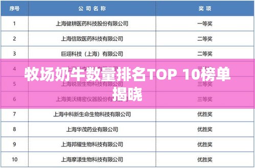 牧场奶牛数量排名TOP 10榜单揭晓