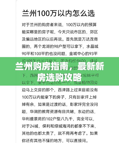 兰州购房指南,最新新房选购攻略