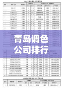 青岛,这座美丽的海滨城市,不仅是经济繁荣的港口,也是众多行业的聚集地,调色行业在青岛也有着不可忽视的地位,随着行业的发展,越来越多的调色公司涌现出来,为各行各业提供优质的服务,本文将为您介绍青岛调色公司的排名,以便您更好地了解这些企业。