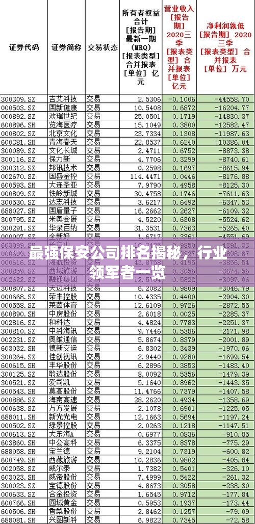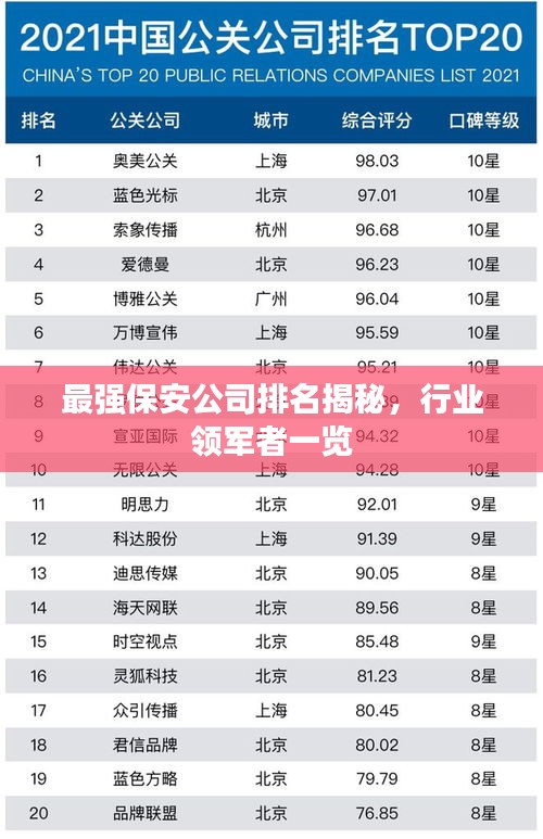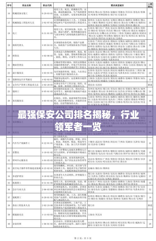随着社会的不断发展,保安行业逐渐成为一个不可或缺的服务业,人们对于安全的需求日益增长,对保安公司的服务质量和实力也提出了更高的要求,本文将为您揭晓当前最强的保安公司排名,带您一探行业领军者的风采。