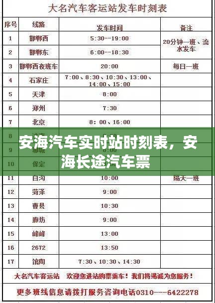 - 客服热线:拨打安海汽车站的客服热线,工作人员会为您提供详细的时刻表信息。
