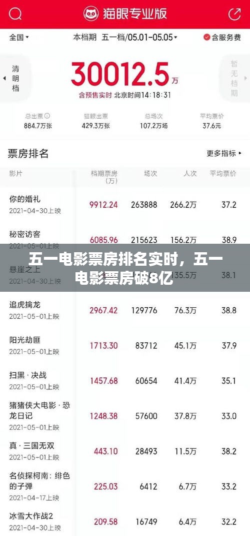 五一电影票房排名实时,五一电影票房破8亿