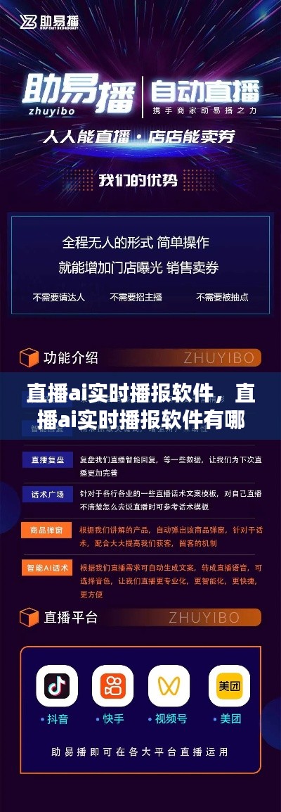 直播AI实时播报软件是一种利用人工智能技术,对直播内容进行实时分析和处理的软件。它能够自动识别直播中的关键信息,如主播的表情、动作、语音等,并将其转化为文字、图片或视频等形式,实时播报给观众。这种软件的出现,极大地提高了直播内容的可观赏性和互动性。