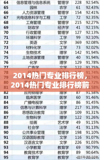 随着社会的发展和科技的进步,各行各业对专业人才的需求也在不断变化。每年,各大教育机构和媒体都会发布热门专业排行榜,为即将步入大学校园的学生们提供参考。2014年,哪些专业成为了热门选择呢?本文将为您揭晓2014年热门专业排行榜。