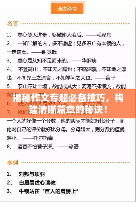 揭秘作文专题必备技巧,构建清晰篇章的秘诀!