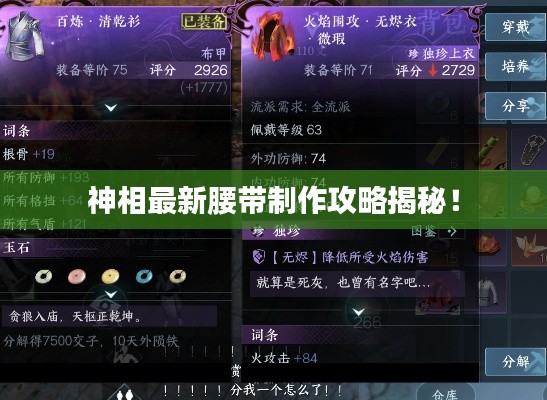 神相最新腰带制作攻略揭秘!