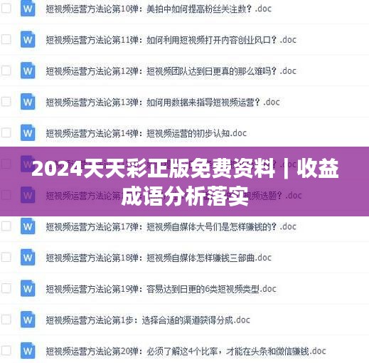 标题:2024天天彩正版免费资料|收益成语分析落实