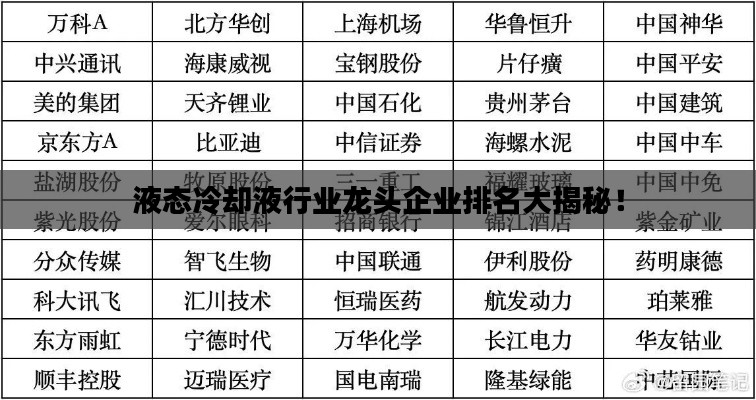 随着科技的不断进步,电子设备的应用日益广泛,对于液态冷却液的需求也日益增长,本文将探讨液态冷却液行业的龙头企业排名,分析其在市场中的地位及未来发展趋势。