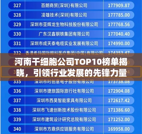 河南干细胞公司TOP10榜单揭晓,引领行业发展的先锋力量