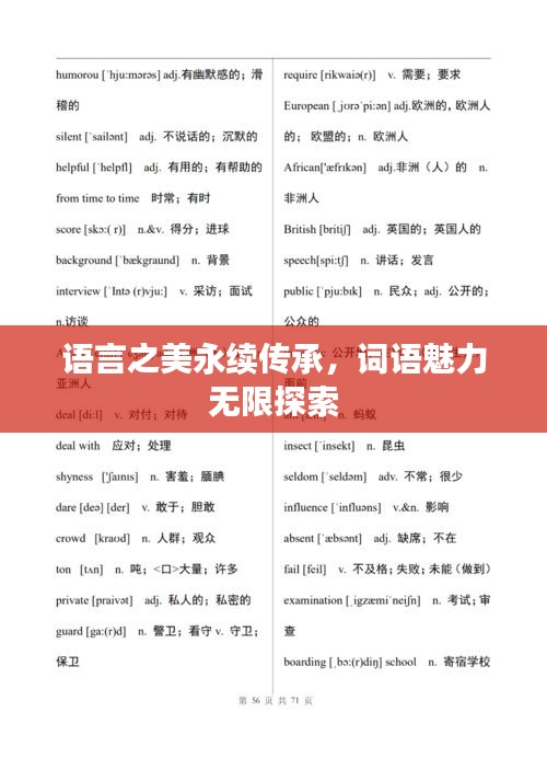 词语的魅力在于其表达方式的多样性和内涵的丰富性,每一个词语都有其独特的音韵、形态和含义,它们在语言中各司其职,共同构成了丰富多彩的表达,当我们使用词语时,不仅是在传达信息,更是在展示语言的魅力。“砥砺前行”、“勇攀高峰”等词语,既富有韵律感,又富含激励意义,展现了词语的无穷魅力。