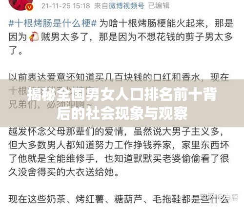 随着社会的不断发展,人口结构的变化成为了反映国家发展面貌的重要指标之一,本文将围绕“全国男女人口排名前十名”这一主题展开,探讨其背后的数据及其所反映的社会现象。