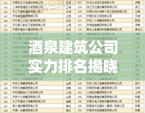 酒泉建筑公司实力排名揭晓,权威榜单,不容错过!