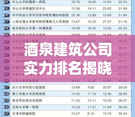 随着酒泉市经济的持续繁荣和城市化进程的加快,建筑业在酒泉市的发展势头迅猛,众多建筑公司在这一背景下崭露头角,为酒泉市的建筑行业发展注入了新的活力,本文将为您详细介绍酒泉建筑公司的排名及相关情况。