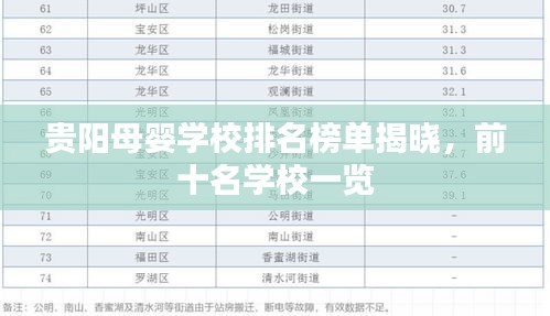贵阳母婴学校排名榜单揭晓,前十名学校一览