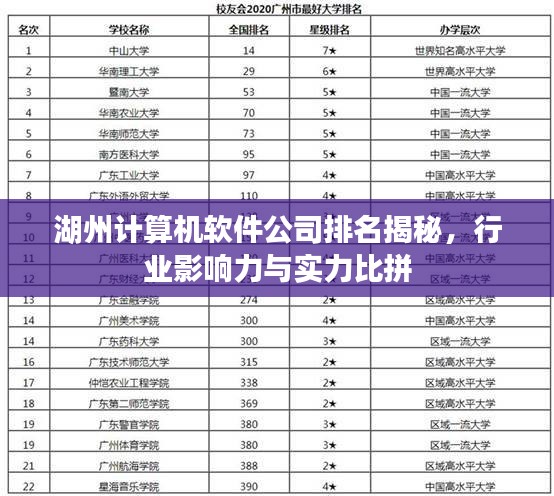 随着信息技术的飞速发展,计算机软件行业在中国各地呈现出蓬勃的发展态势,湖州市作为浙江省的重要城市之一,其计算机软件行业也取得了显著的成绩,本文将探讨湖州计算机软件公司的排名及其行业影响力。