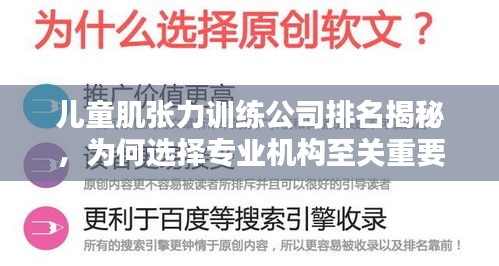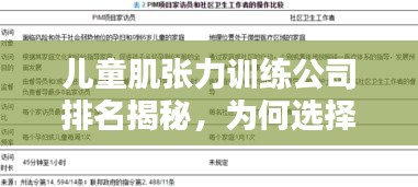 儿童肌张力训练对于儿童的健康成长具有重要意义,选择一家专业的儿童肌张力训练公司至关重要,家长在选择公司时,应了解公司的背景、团队实力、设施等方面,以确保孩子得到最好的训练服务,家长还应关注儿童肌张力训练公司的排名,选择排名靠前的公司,为孩子提供更优质的服务,希望通过本文的介绍,家长能更好地了解儿童肌张力训练公司,为孩子的健康成长做出明智的选择。