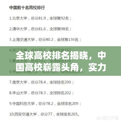 随着全球教育的交流与竞争的加剧,世界高校排名成为了衡量一所大学教育质量、科研实力和国际影响力的关键指标,我国有多所大学成功入选世界高校排名,这不仅是我国高等教育发展的重大突破,也标志着我国在全球教育领域的地位不断提升。